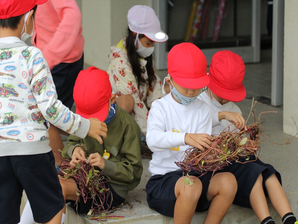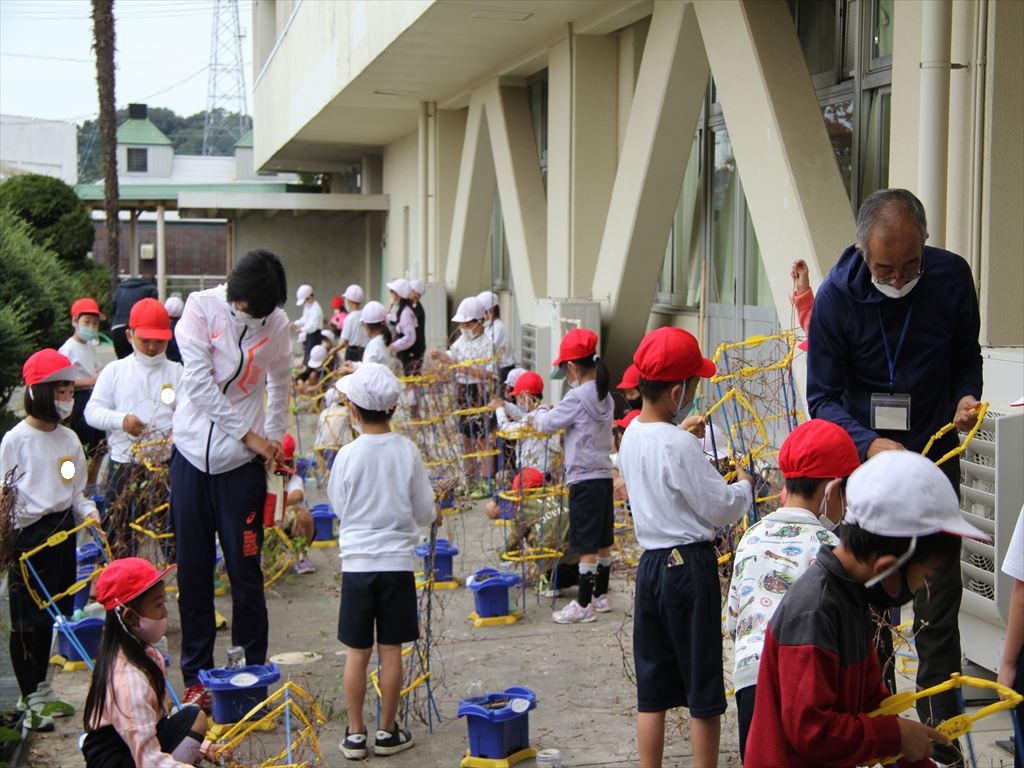 10月6日(木)に1年生があさがおのつるを使ってクリスマスリースを作りました。