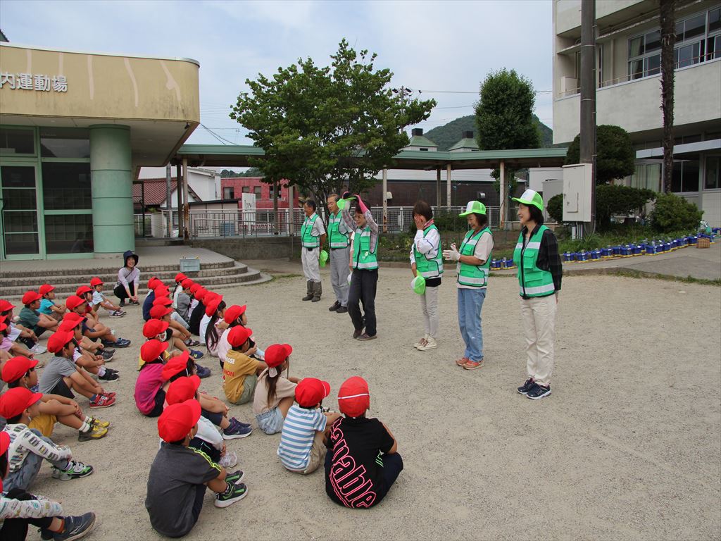 アサガオの種まきでお世話になった民生児童委員さんの顔を見ると1年生の子どもたちはとてもうれしそうにあいさつをしていました。