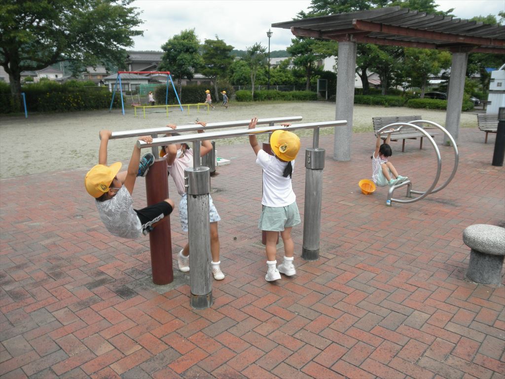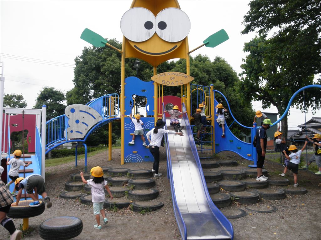 公園では、自然に触れたり、遊具で遊んだりしました。
