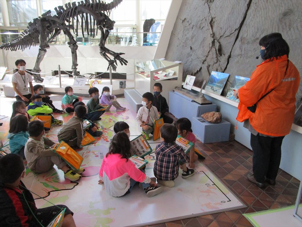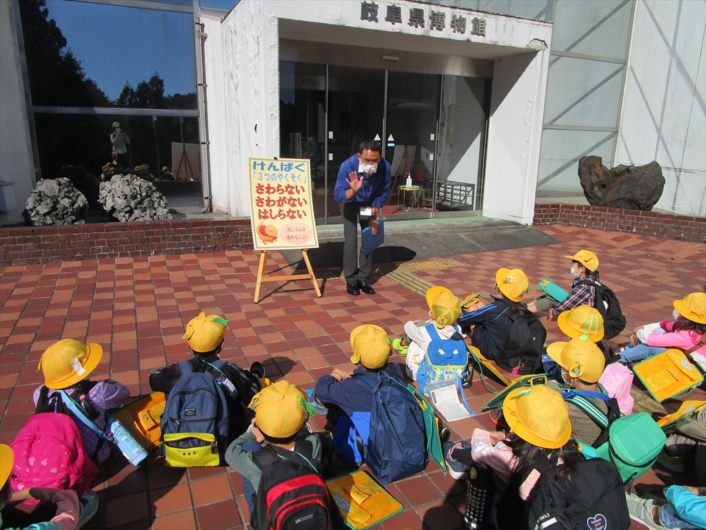最初に、百年公園の中にある「岐阜県博物館」を見学しました。博物館では恐竜の話を聞かせていただき、その後、化石のレプリカも作りました。