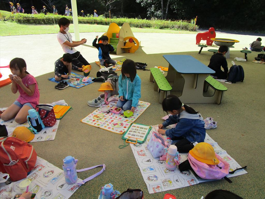「秋みつけ」のあとは、待ちに待ったお弁当の時間でした。愛情いっぱいのお弁当をいただき、みんなとっても幸せそうでした。