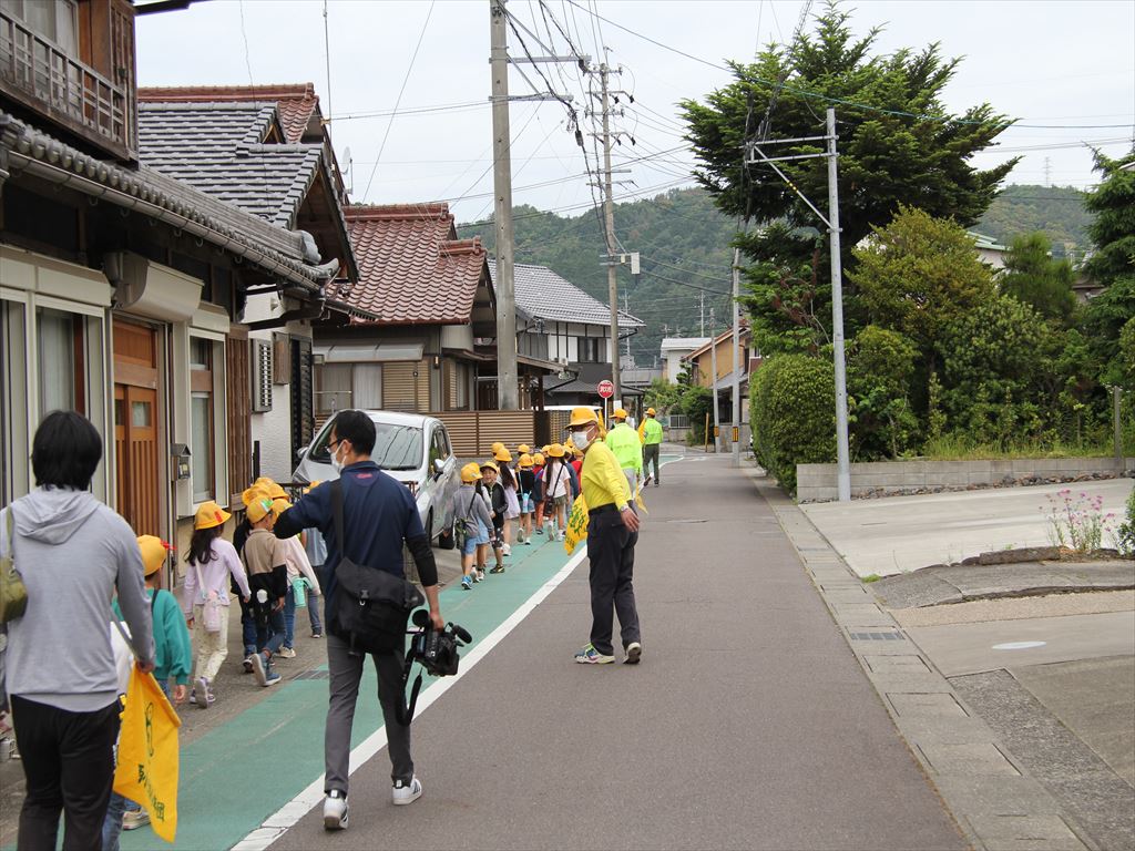 3回の通学路探検には、毎回、交通安全協会川辺支部のみなさんが、子どもたちの安全確保のために協力してくださいました。