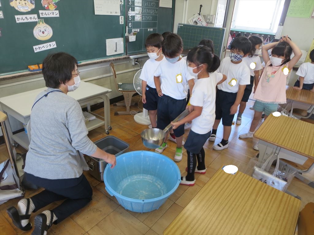学校給食センターから栄養教諭の藤井先生にお越しいただき、「給食ができるまで」という内容で学習しました。