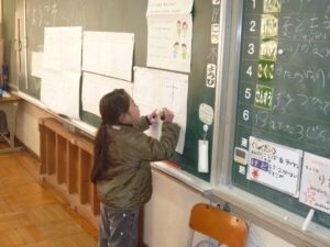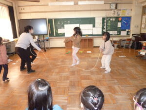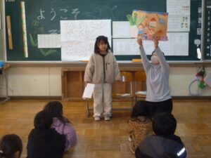 今日は、1年生が第2こども園の年長さんを北小にお迎えして交流会を行いました。「国語の勉強で上手にひらがな、カタカナ、漢字が書けるようになった子」「算数の勉強で計算ができるようになった子」「体育の勉強で縄跳びができるようになった子」「図工の勉強で絵が上手に書けるようになった子」など、1年間でつけてきた力を堂々と発表する姿は、とても素晴らしかったです。もうすぐ2年生。お兄さん、お姉さんになる準備はOKですね!年長さんが元気いっぱい入学してきてくれることを楽しみに待っていますよ~。