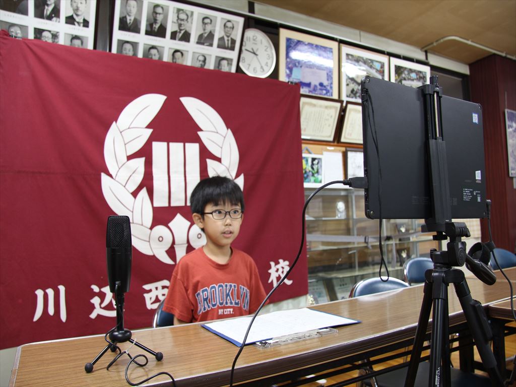 始業式はリモートで行い、はじめに3年生代表児童2名が、2学期に頑張りたいことを話しました。その後、校長から2学期に高めたい力について話しました。