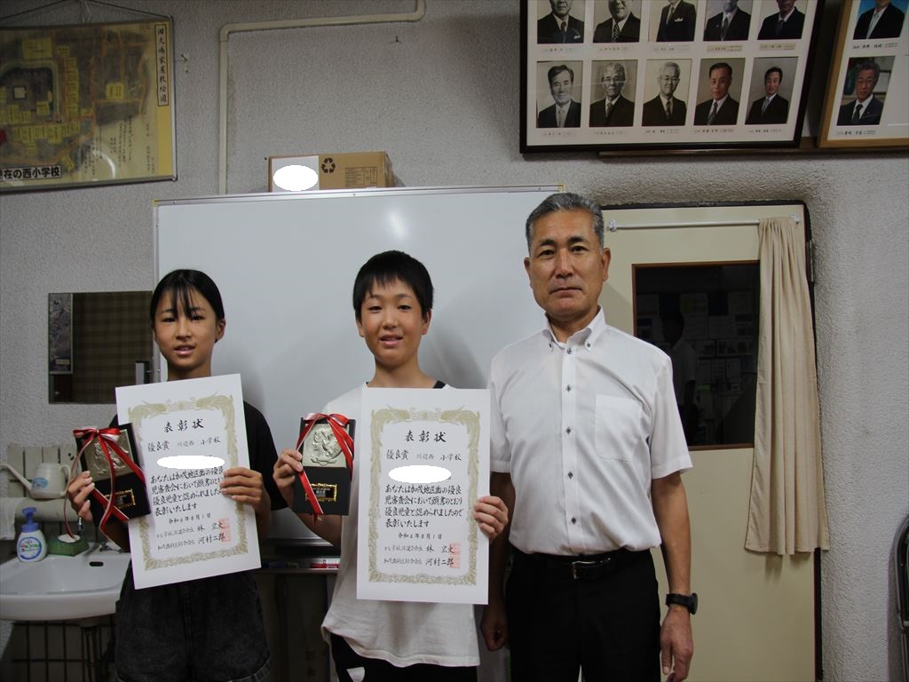 また、夏休み中に行われた「加茂地区歯の優良児審査会」で優秀な成績を収めた2名の代表児童の表彰も行いました。
