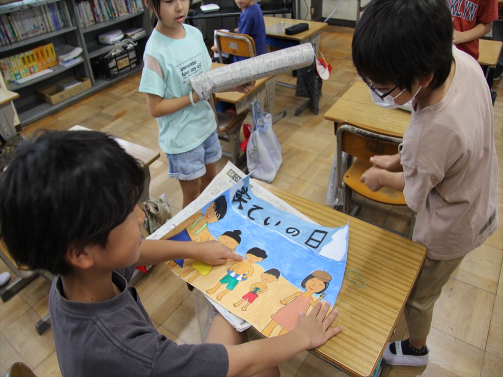 始業式の後は、学級ごとに夏休みの思い出を話したり、宿題を提出したりしました。
