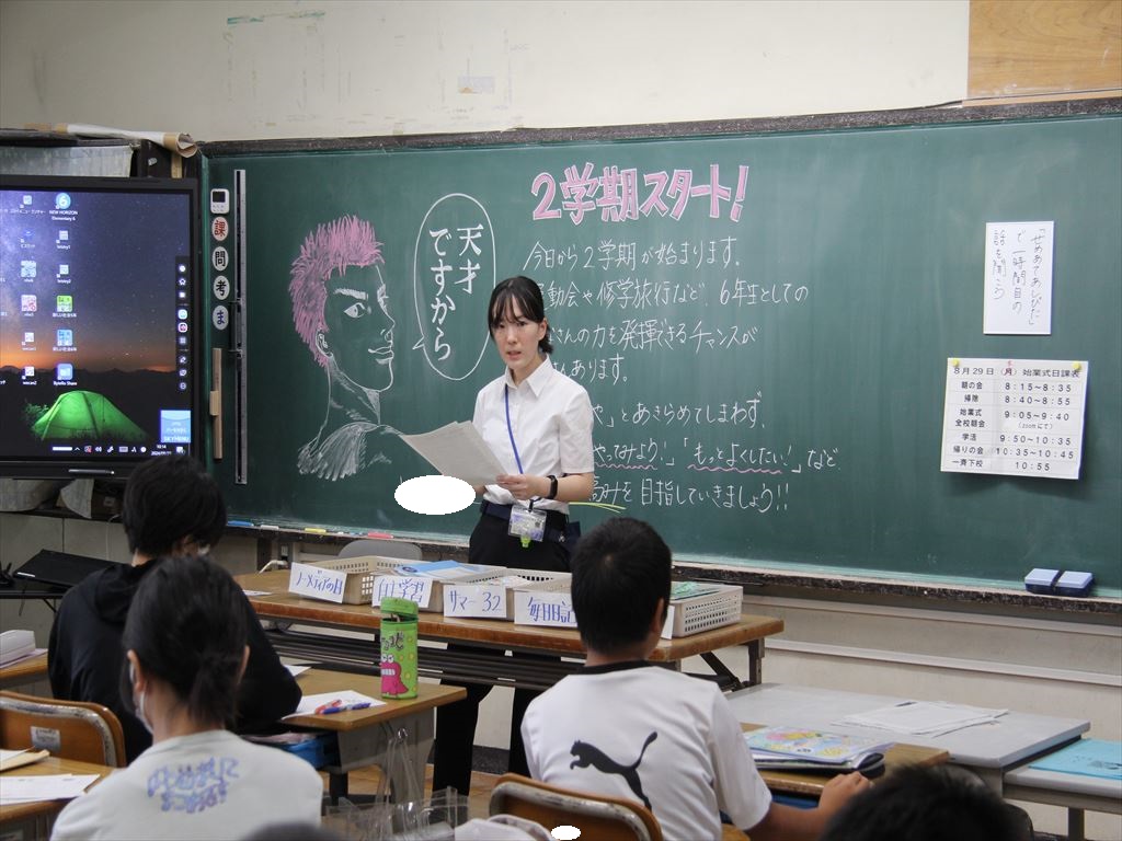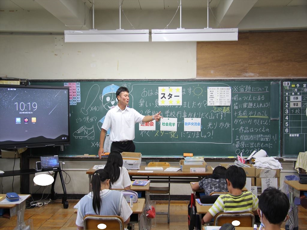 40日間の夏休みが終わり、第2学期の始業式を行いました。久しぶりに登校した子どもたちは、みんな元気で、充実した夏休みを過ごしたことが伝わってきました。