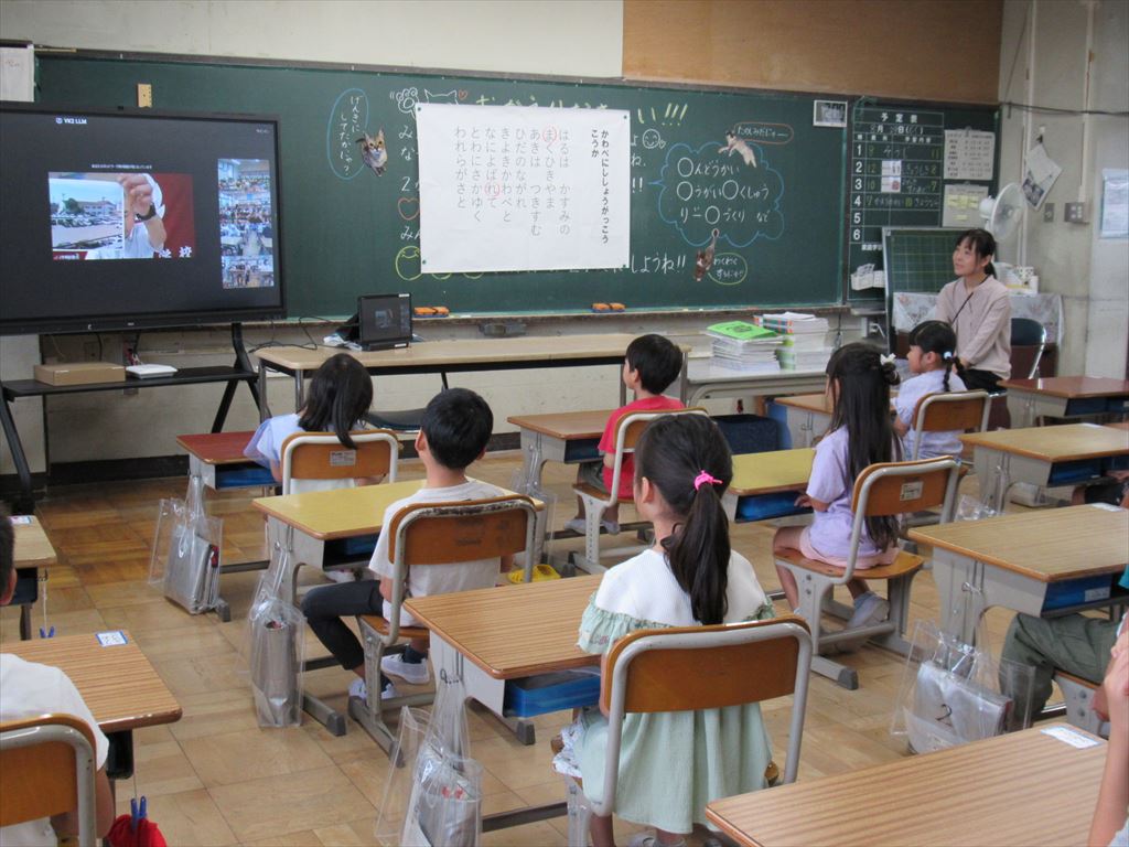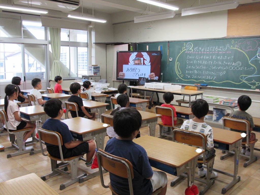 教室で始業式に参加した児童は、みんな良い姿勢で、うなずきながら話を聞くことができました。