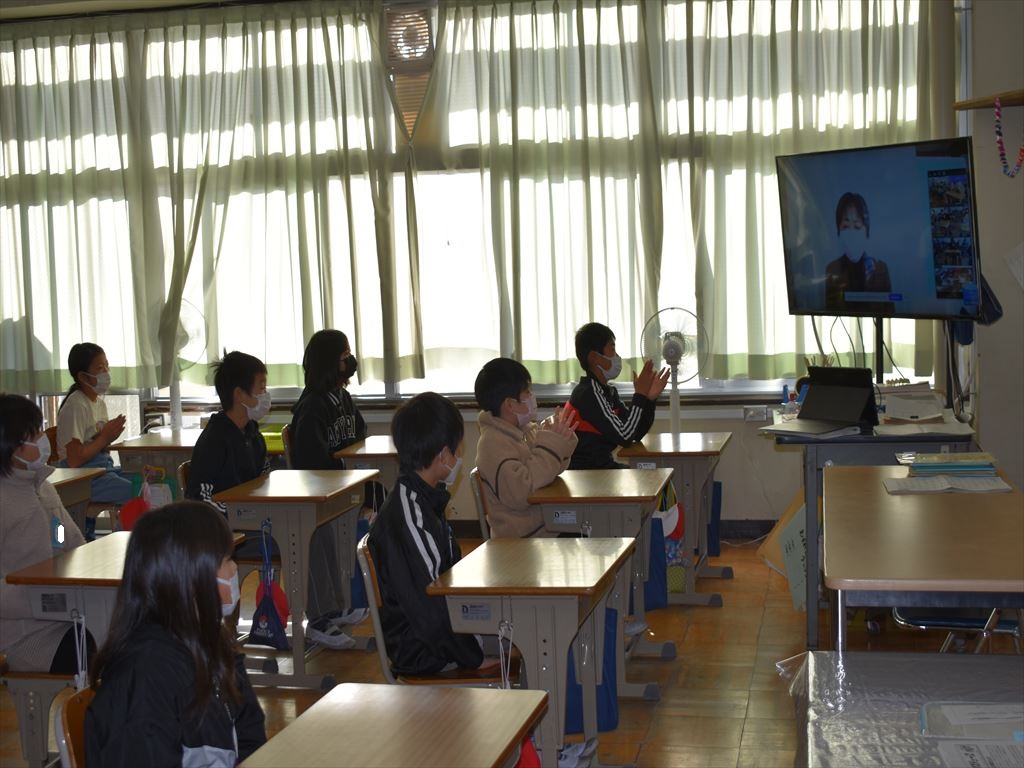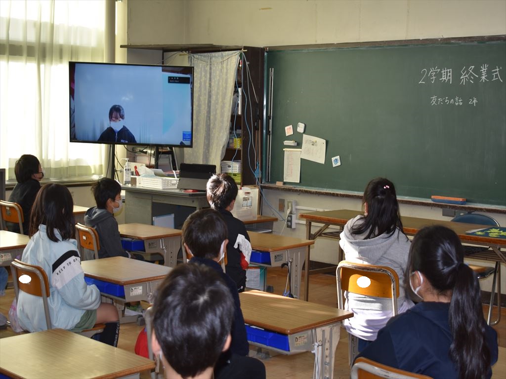 1学期と同じように全校で集まることは避け、リモートで各学級をつないで行いました。児童代表の話では、2年1組・2組、4年1組・2組の代表児童が2学期に頑張ったことを堂々と話してくれました。