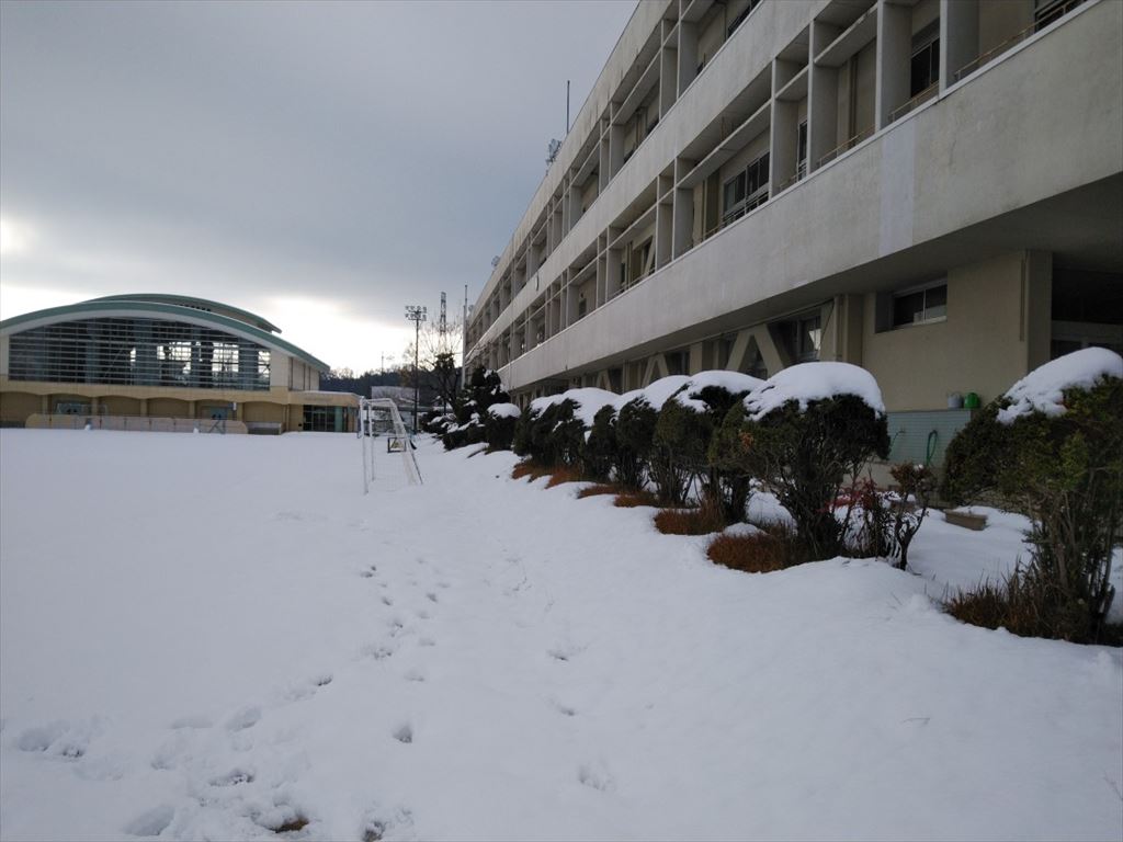 12月24日(土)雪に包まれた西小学校です。