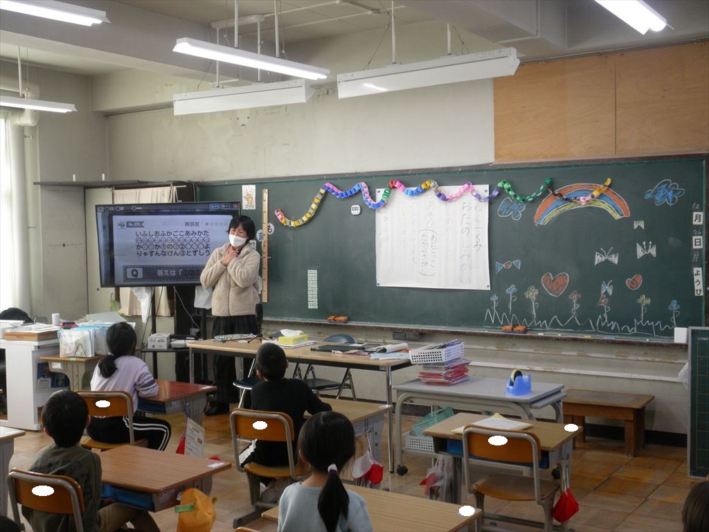 終業式の後は、学級ごとに担任の先生から2学期のまとめの話や冬休みの生活についての話を聞き、2学期の学習・生活の成果をまとめた「こどもの姿」が一人一人に手渡されました。