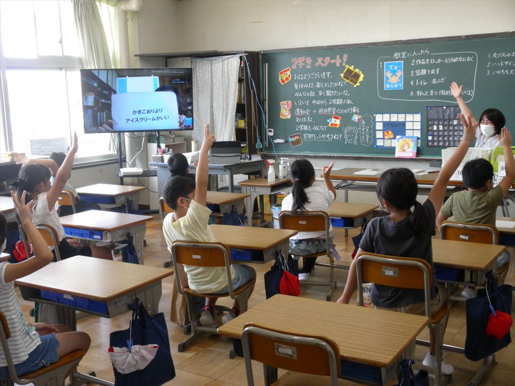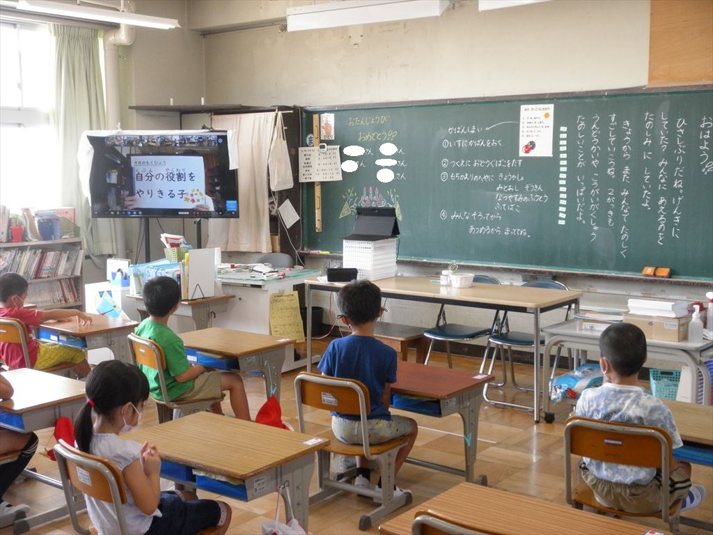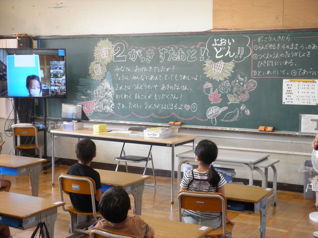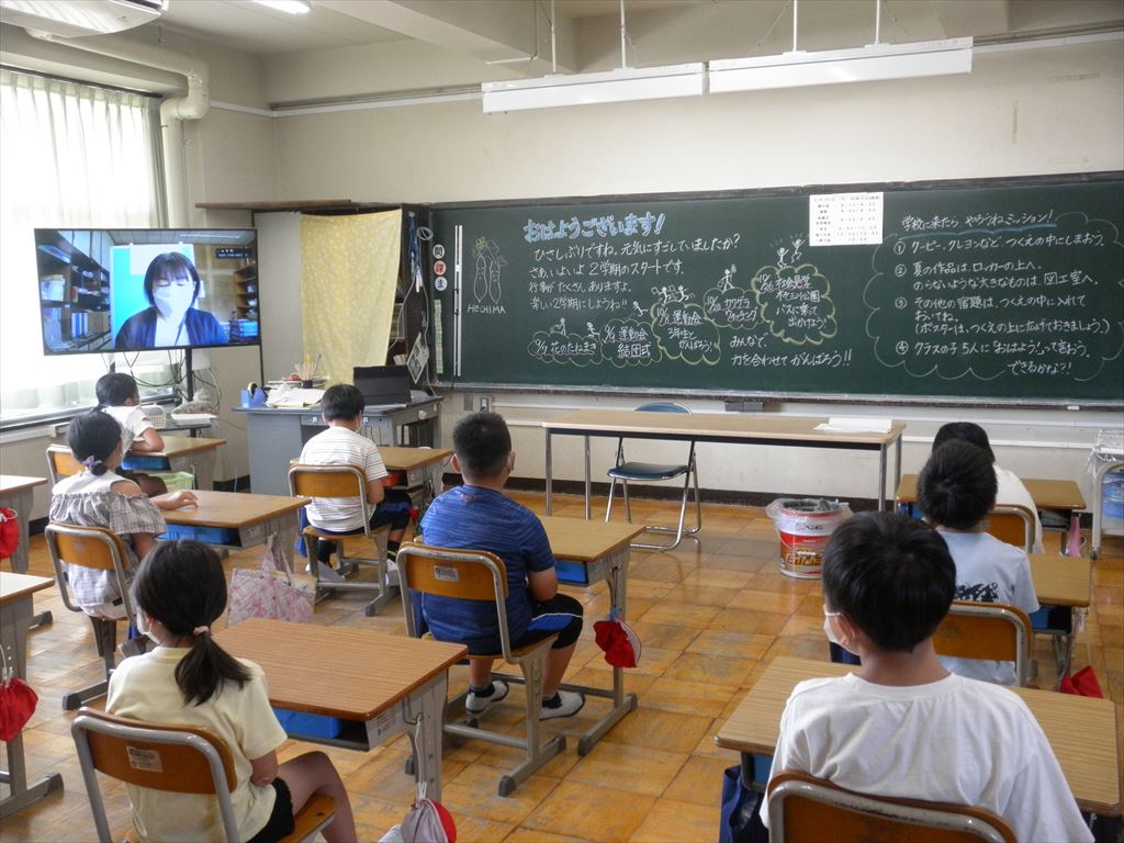 2学期の始業式も、全校が体育館に集まることを避け、各教室をリモートでつないで行いました。