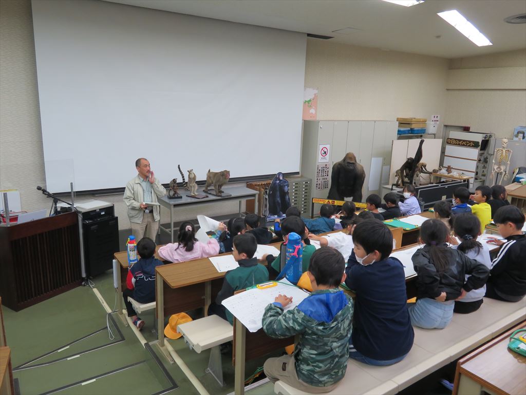 モンキーセンターでは、国語の教材「どうぶつ園のじゅうい」の学習で学んだ獣医の仕事について、実際に働いている方々に話を聞きました。