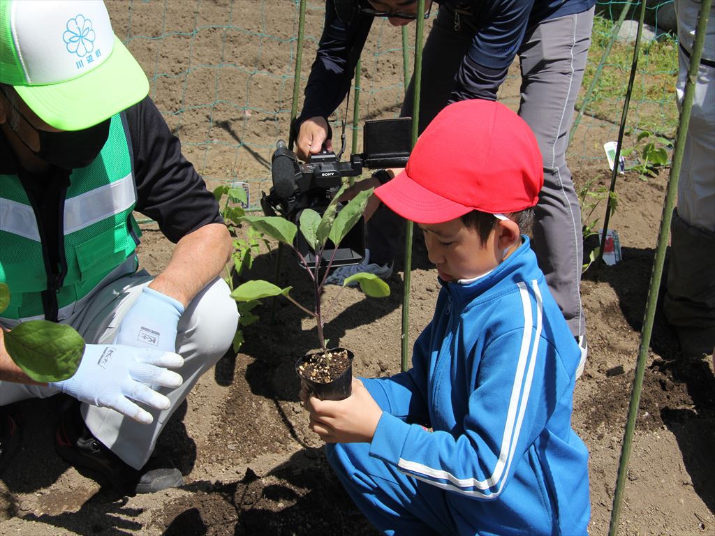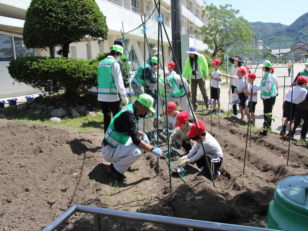 5月10日(金)に2年生が民生委員さんと野菜の苗植えを行いました。