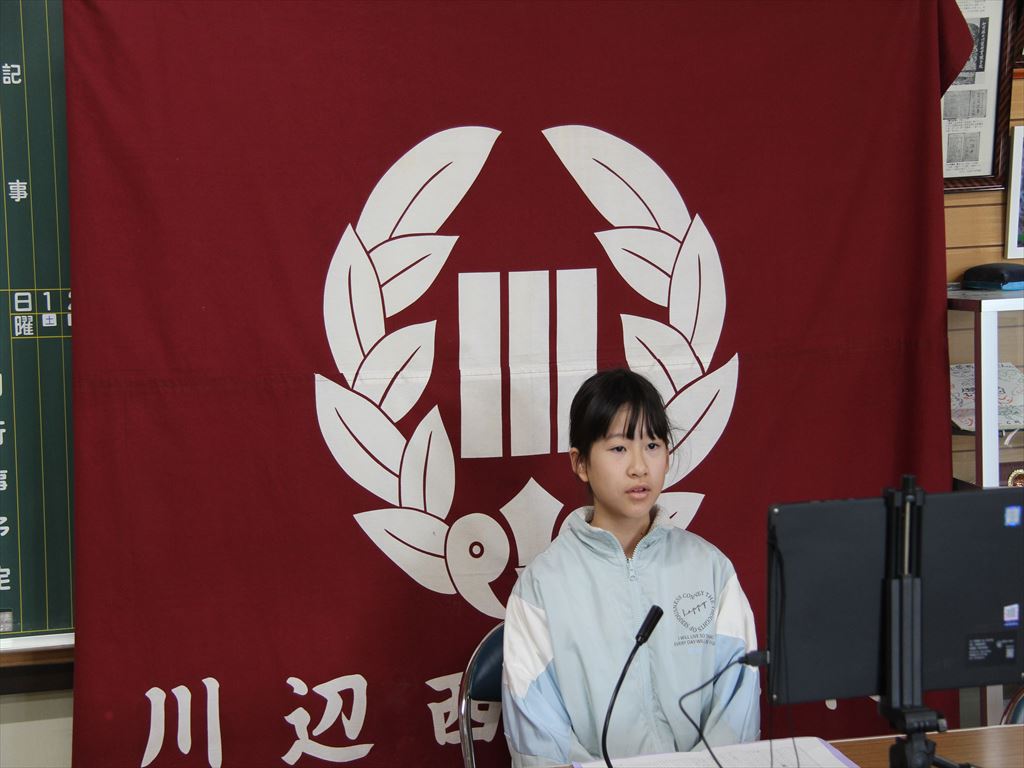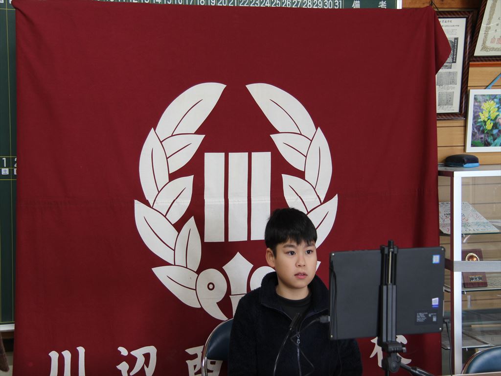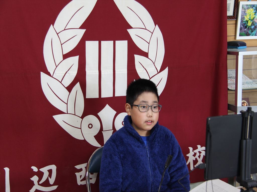 始業式は、リモートで行いました。式の中で、4名の児童が、「2学期にがんばったことと3学期に取り組みたいこと」を堂々と語ってくれました。