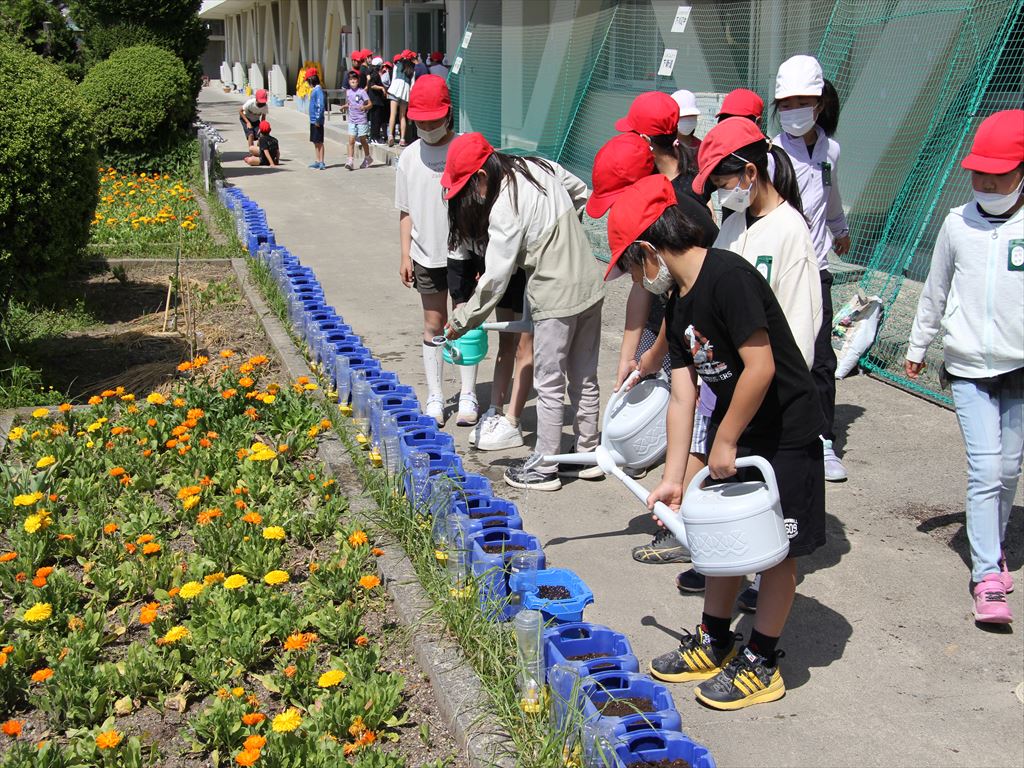 5月12日(金) 3年生がホウセンカの種まきをしました。