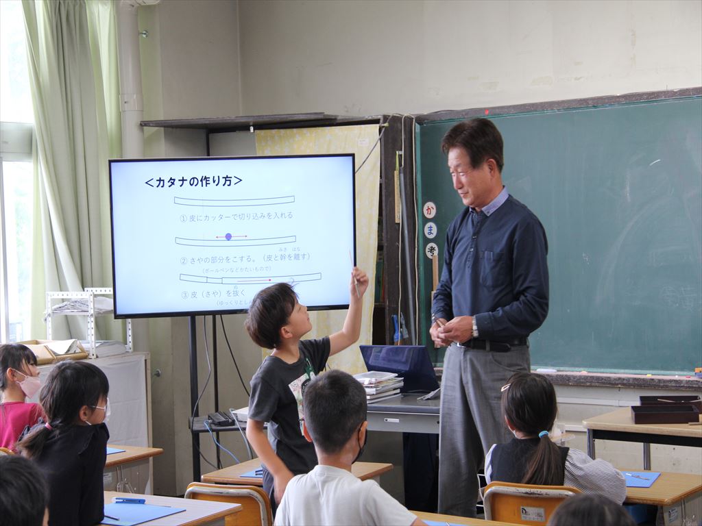 タカノツメという木の枝を使ってみんなで刀を作ることにも挑戦しました。