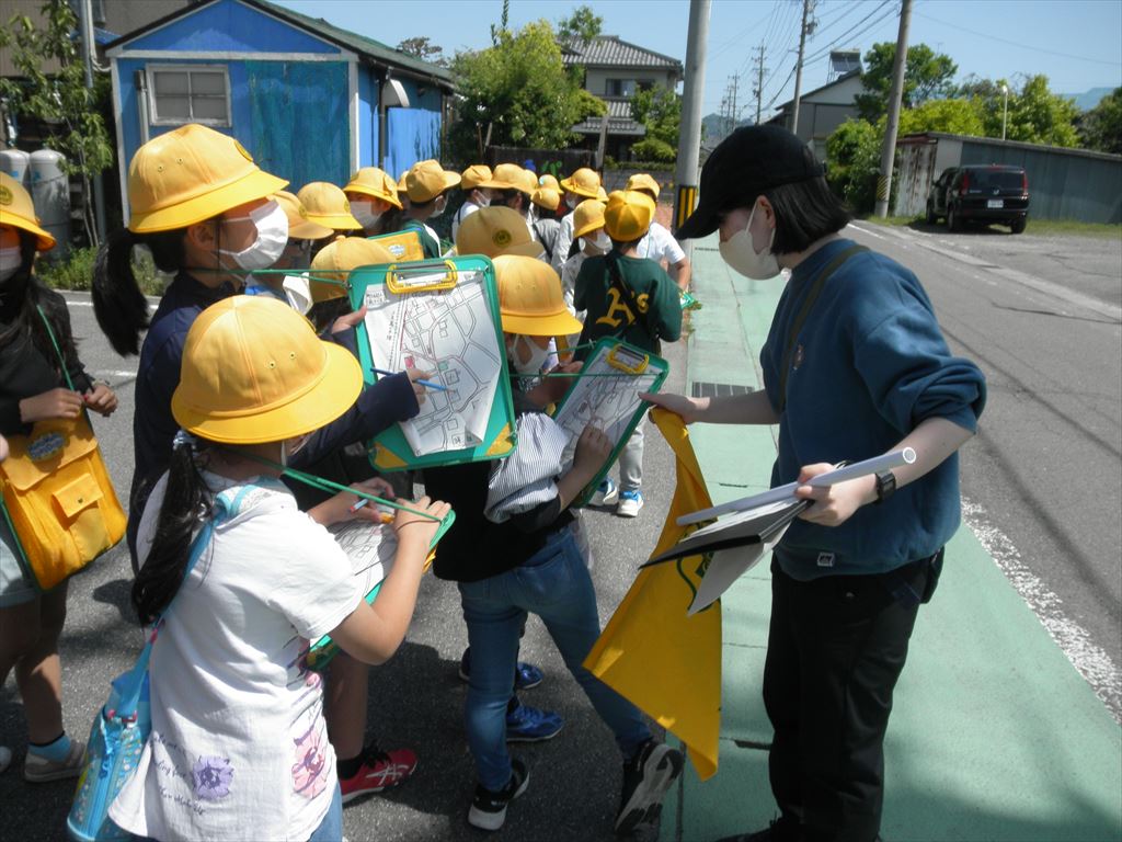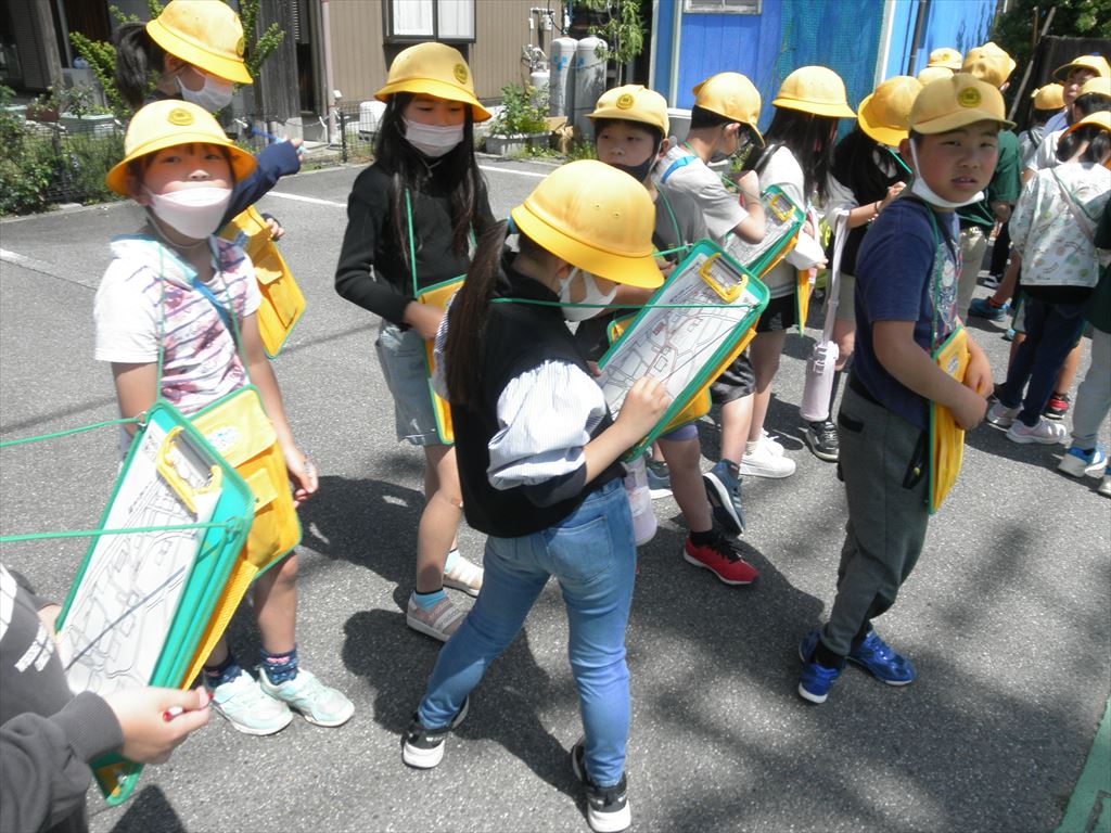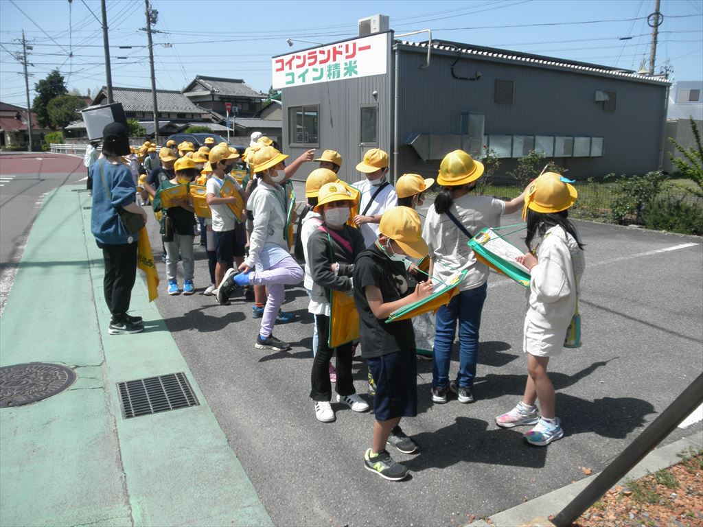 5月2日(火) 青空のもと、3年生が社会科の授業で町探検に出かけました。
