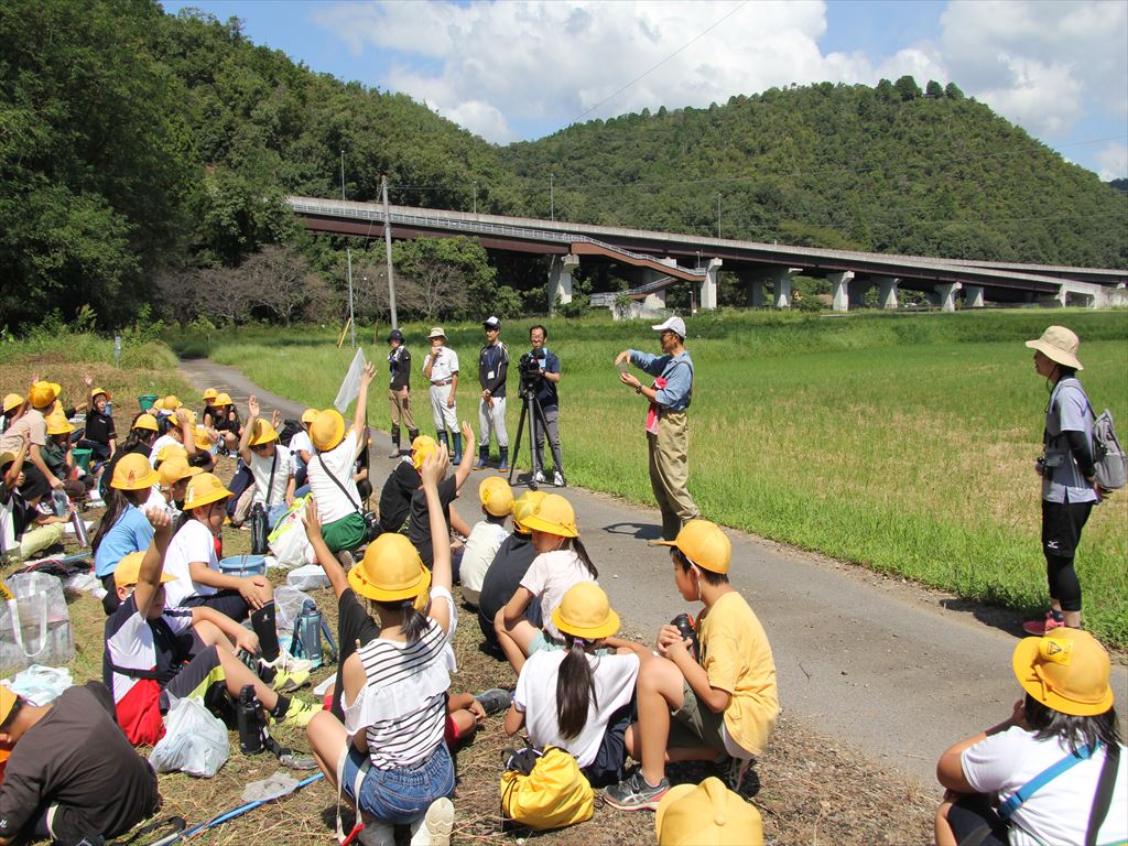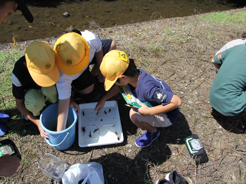 9月13日(水) 4年生が雄鳥川にカワゲラウォッチングに行きました。一昨年度まで川辺西小の校長をしてみえた宮西校長先生と川辺町役場の方々に講師をお願いし、いろいろ教えていただきました。
