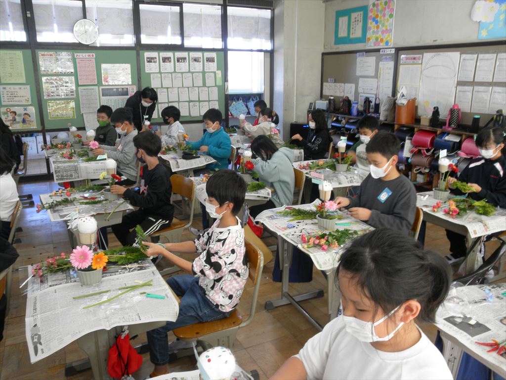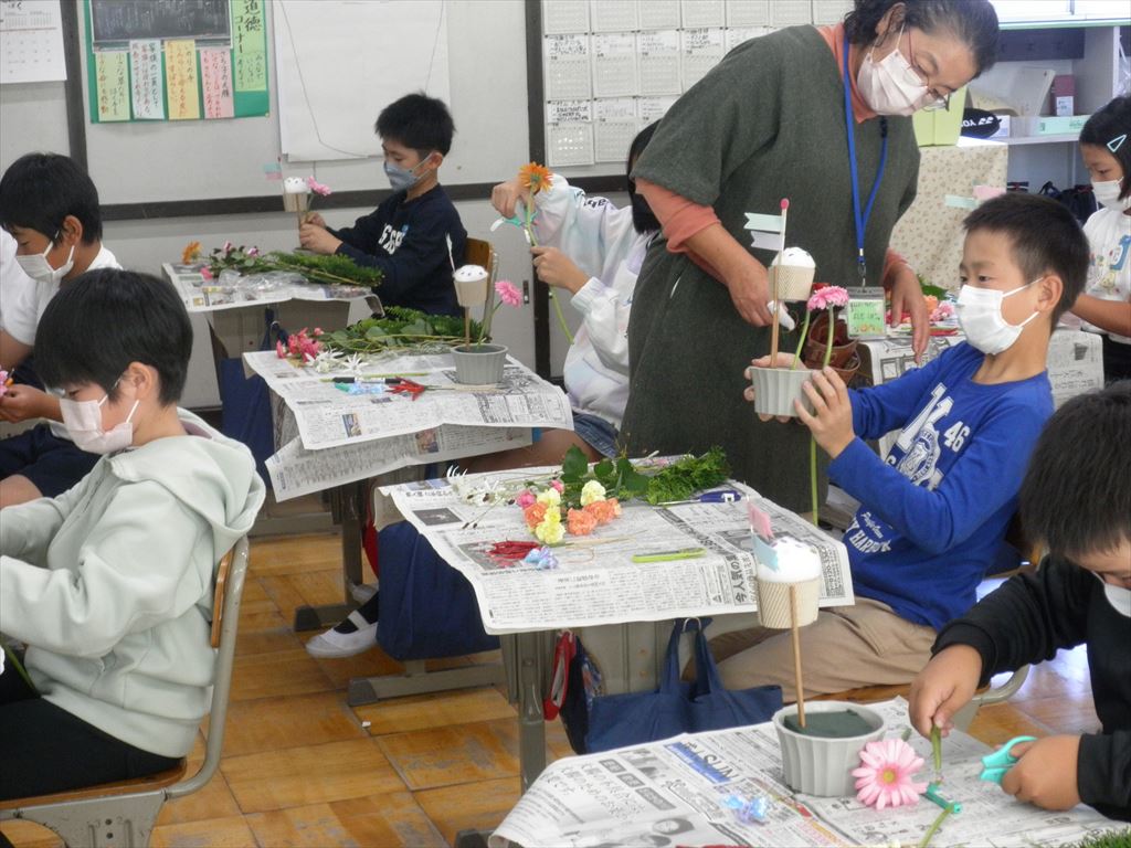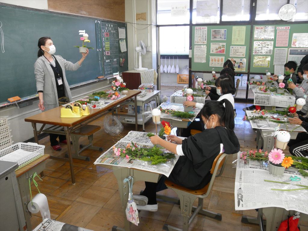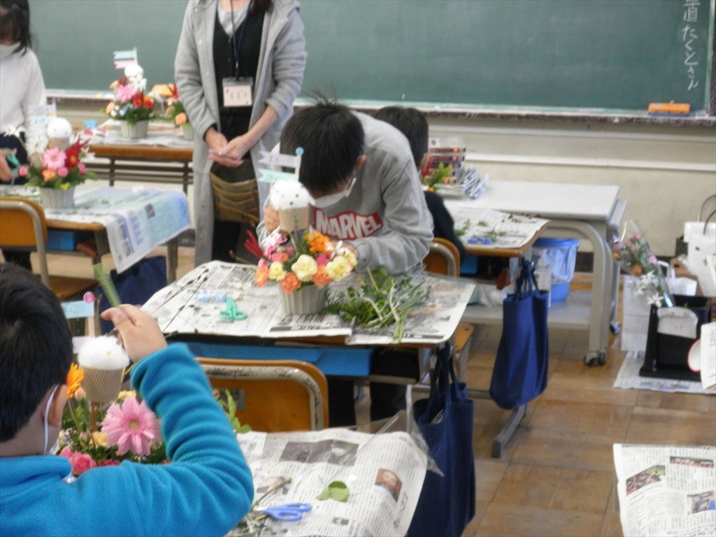 11月9日(水) 4年生がフラワーアレンジメント教室を行いました。
