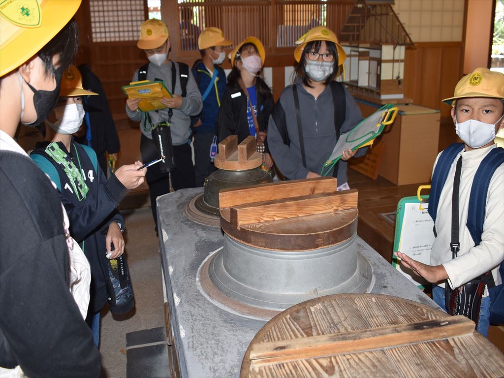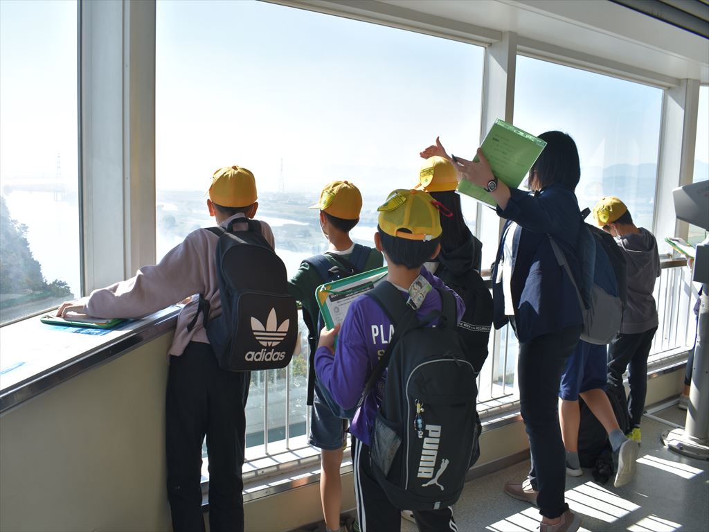 10月26日(水) 4年生が木曽三川公園に社会科見学に行ってきました。3つの川の流れや輪中の位置、輪中に立つ家、またそこに暮らす方々の生活の工夫などを学びました。