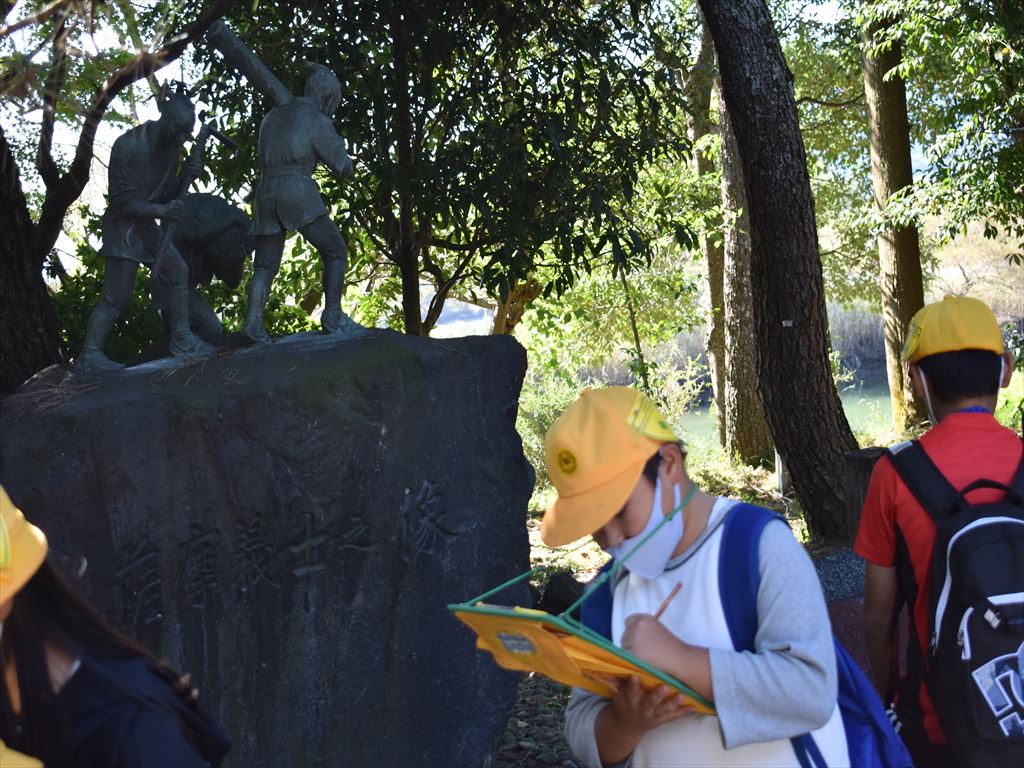 午後からは、治水神社を見学しました。たくさんのことをメモし、安全に社会科見学を終えることができました。