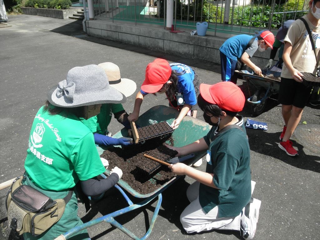 9月7日(水) 4年生が、「岐阜の花で飾ろう私の学校」という県の事業を活用し、花苗の栽培体験を行いました。