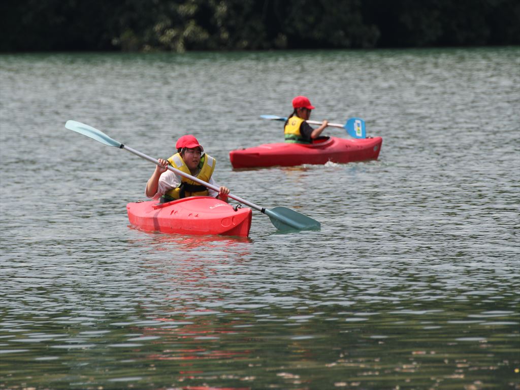 5年生ははじめてのカヌー体験ということで心配していた子もいたようでしたが、体験が始まるとみんなとても上手にカヌーを操作し、楽しんでいました。