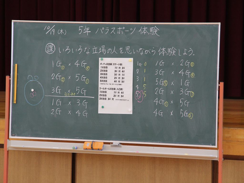 10月19日(木) 5年生がパラスポーツ体験を行いました。川辺町社会福祉協議会の皆様を講師にお招きし、ボッチャとゴールボールを体験しました。