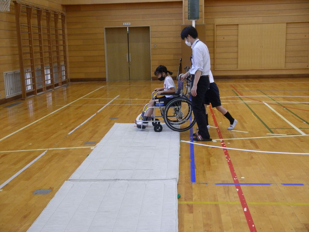 車いすに実際に乗り、傾斜のある道や段差のある道を通ることの難しさを体験しました。