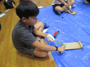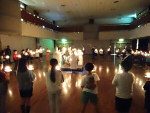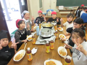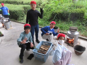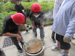 21日(火)22日(水)の一泊二日の宿泊研修に岐阜市少年自然の家へ行ってきました。1日目は施設館内で「謎解きラリー」、「お楽しみレクリエーション」、翌日の昼食のカレーライスで使う「竹スプーンづくり」、夜は神聖な催しの「キャンドルサービス」を行いました。2日目は自然の木を使った「火おこし体験」、昼食の「カレーライスづくり」を行いました。自分たちで作ったおいしいカレーライスを食べてから、学校へ向けて出発しました。今月、施設付近で数件の熊の目撃情報があったため、すべての活動を館内で行いましたが、子どもたちはとても楽しく2日間の研修を行ってきました。