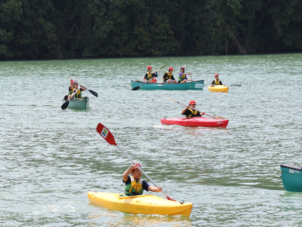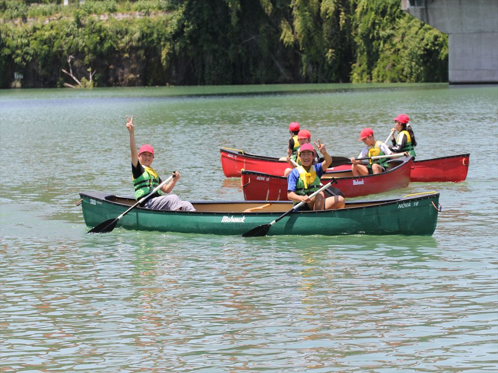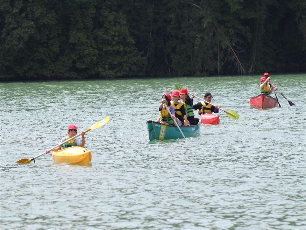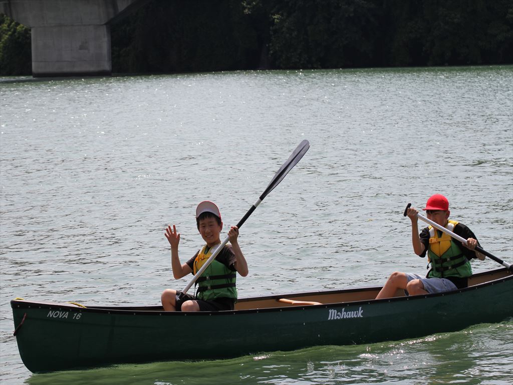 1人乗りのカヌーだけでなく、2人乗りのカナディアンカヌーにも乗り、力を合わせて漕ぎました。