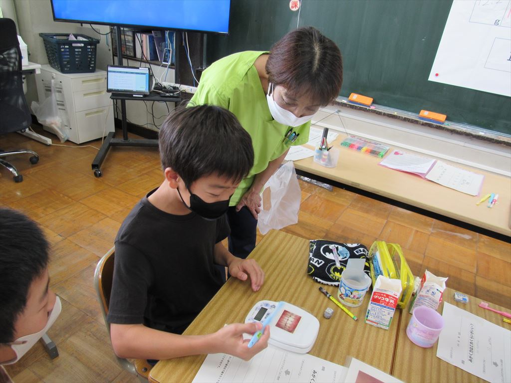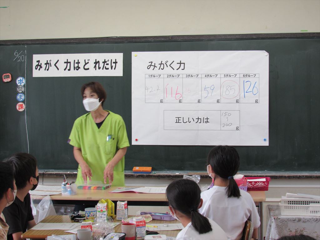 6年生のテーマは、ブラッシングの際の強さについてでした。