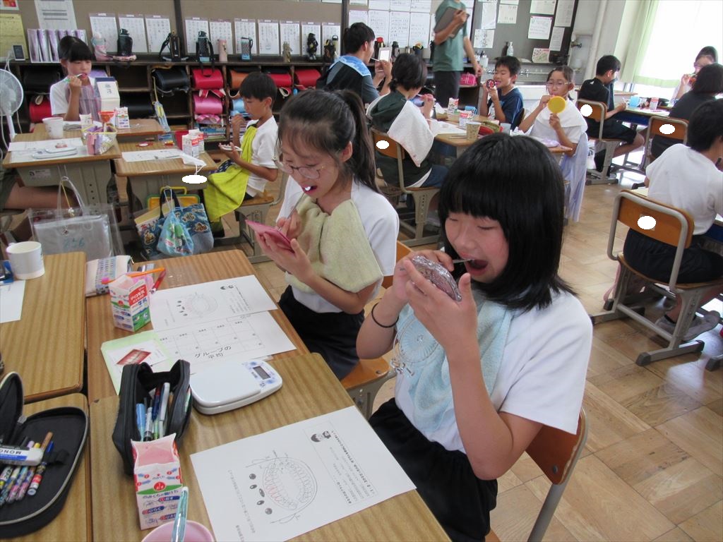 6月20日(火)に6年生が歯科指導を行いました。毎回お世話になっている加藤歯科の歯科衛生士の安江先生にお越しいただきました。