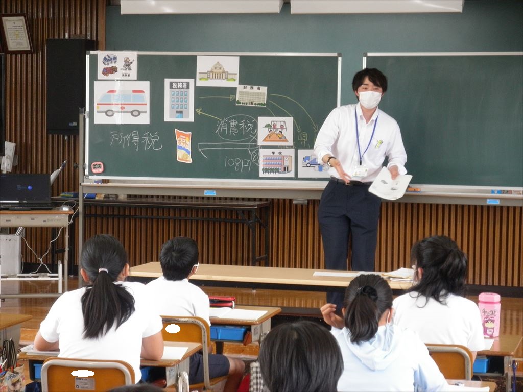 所得税や消費税など、税金にはさまざまな種類があることや、税金がどのように使われているのかなど、わかりやすく説明していただきました。
