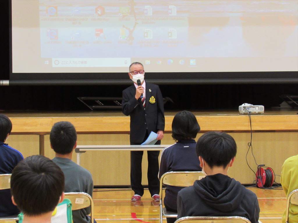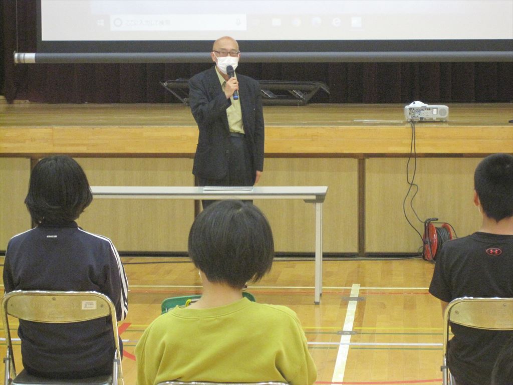 川辺ライオンズクラブ会長の村上英喜様、加茂警察署生活安全課の青木崇典様、保護司の渡辺昌宣様、川辺ライオンズクラブ青少年健全育成委員長の多和田茂裕様にお越しいただき、薬物乱用の恐ろしさなどを丁寧にお話しいただきました。また、川辺町の石原議員様にも講座の様子を参観していただきました。