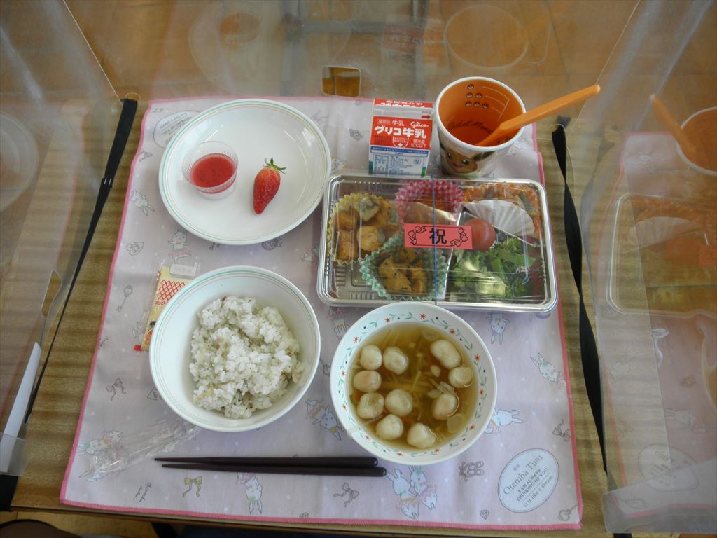 いつもおいしい給食をいただいていますが、今日はいつも以上のメニューと量にみんなお喜びでした。