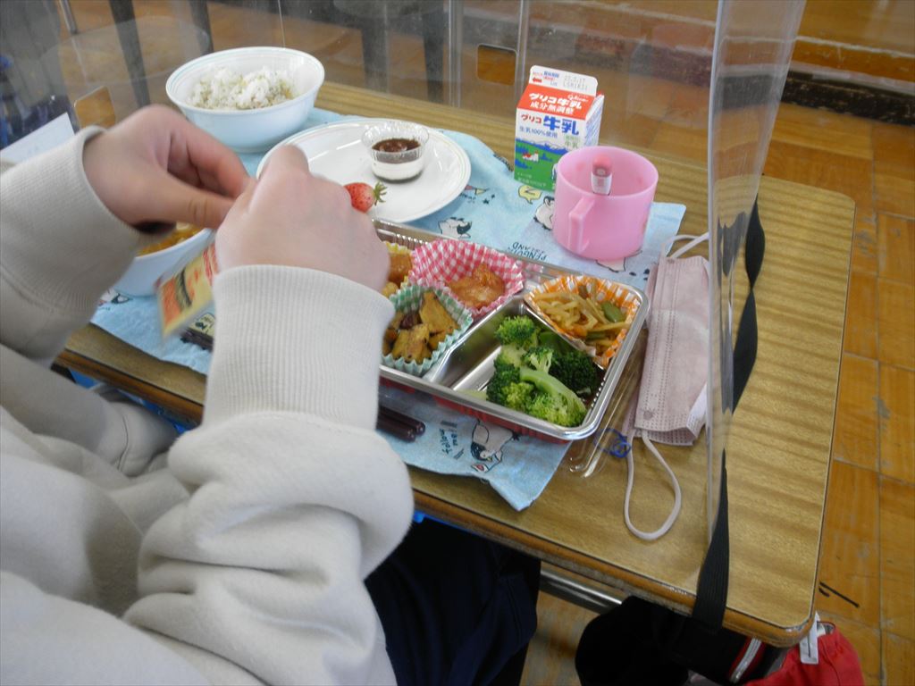 これは毎年行われている特別給食です。事前にデザートのケーキの種類も選ぶことができました。