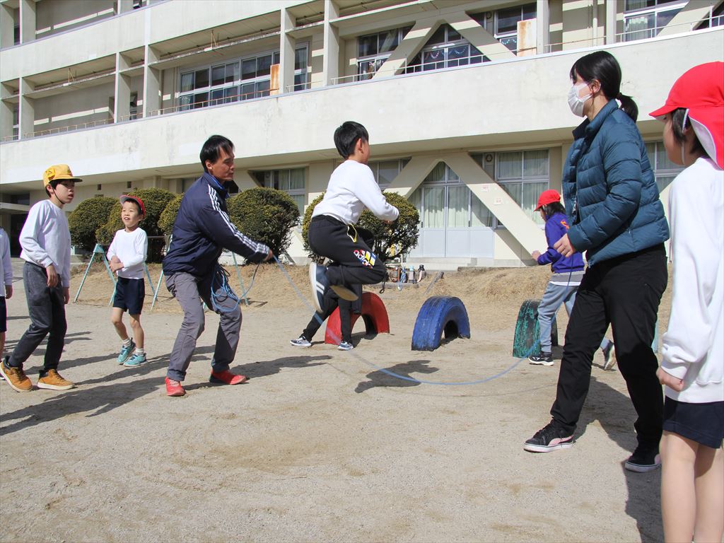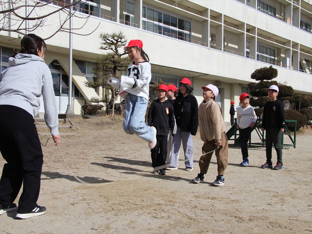20分休み時間を使い、8の字なわとびの記録会を行いました。