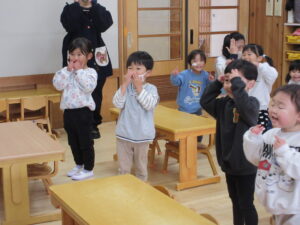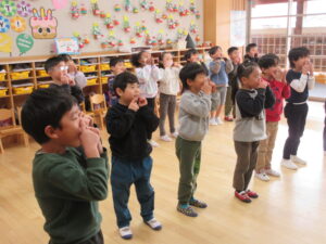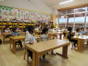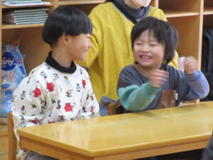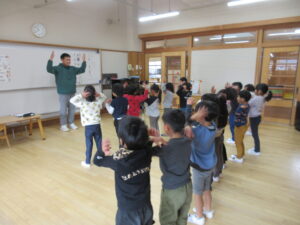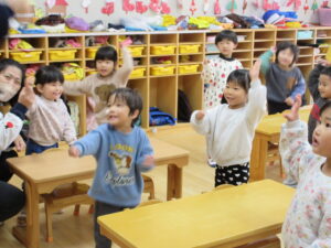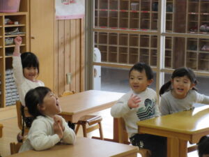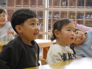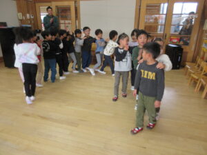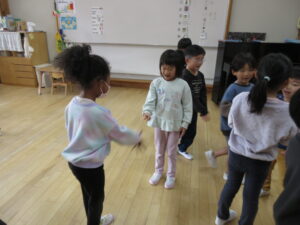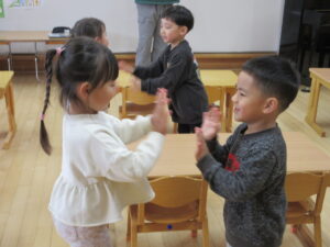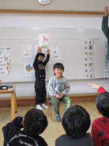 英語に触れながら、ゲームやリズム遊びを楽しんでいます。