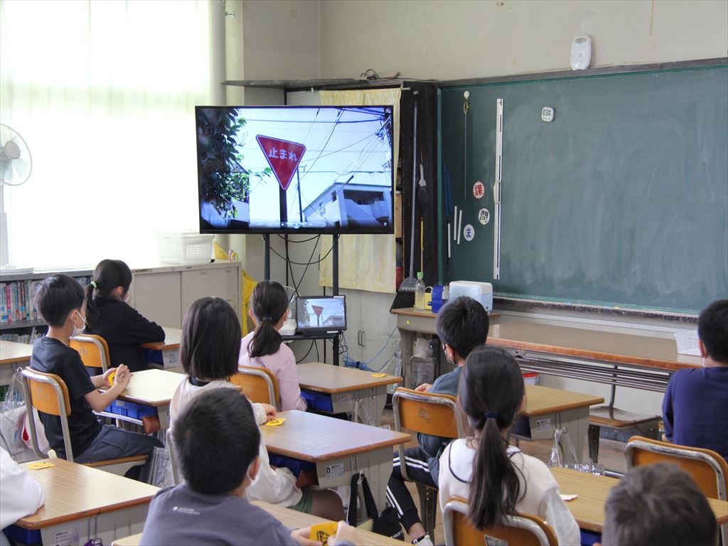 入団式の後は交通教室として、各教室で交通安全に関わるビデオを見ました。