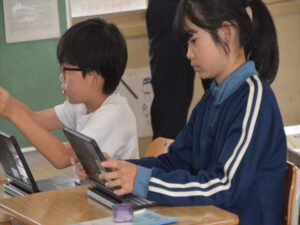 4年生が、算数の全校研究授業(単元名「2けたでわる計算」)を行いました。「85÷27」のひっ算の仕方を習得し、それと類似したわり算のひっ算を速く正確にできるように、多くの計算問題にチャレンジしました。頑張っていますね、4年生!