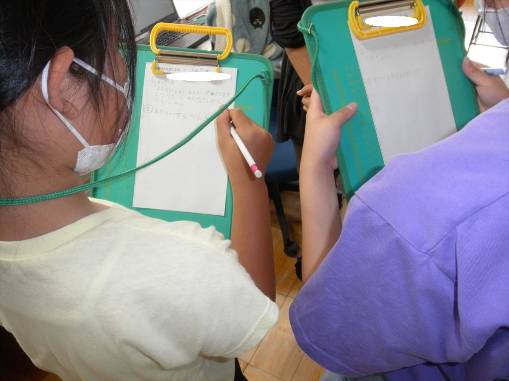 学校で働いていて苦労したことはありますか?など、さまざまなことを聞き、メモをしました。質問する際の言葉遣いもとても丁寧で、すばらしいインタビューの姿勢でした。